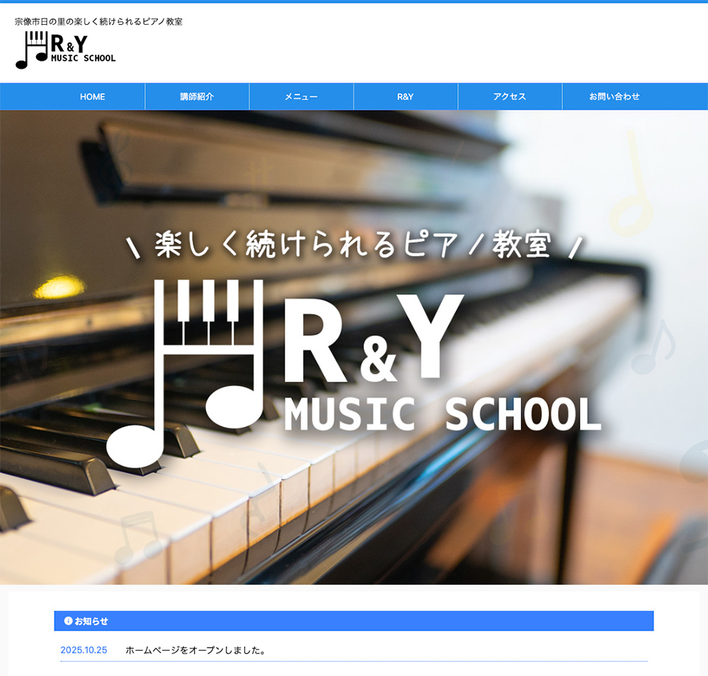 この度、宗像市日の里の楽しく続けられるピアノ教室「R&Yミュージックスクール」のホームページを制作させていただきました!
